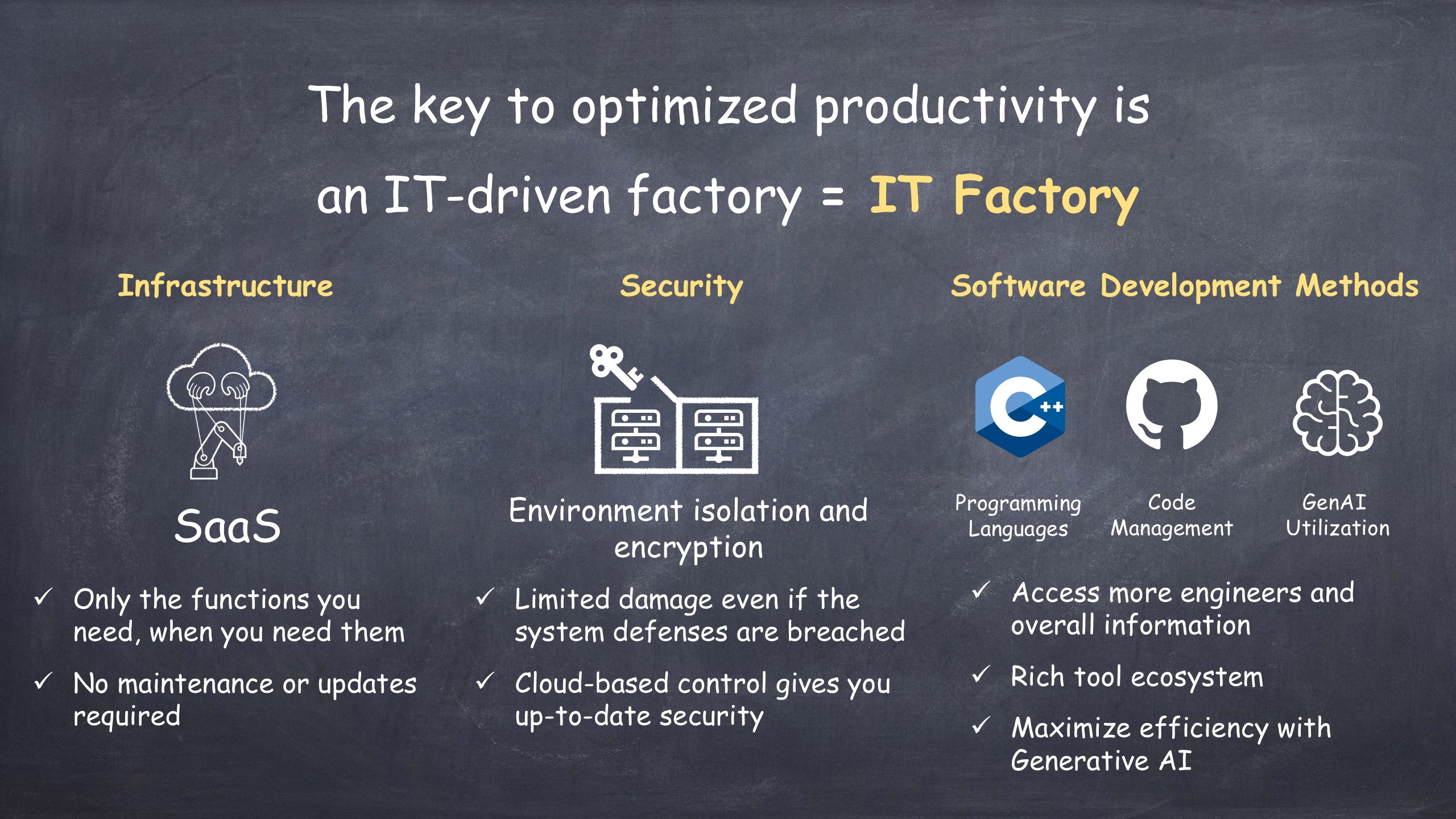 The IT Factory is realized by directly connecting to the cloud via a cloud control panel